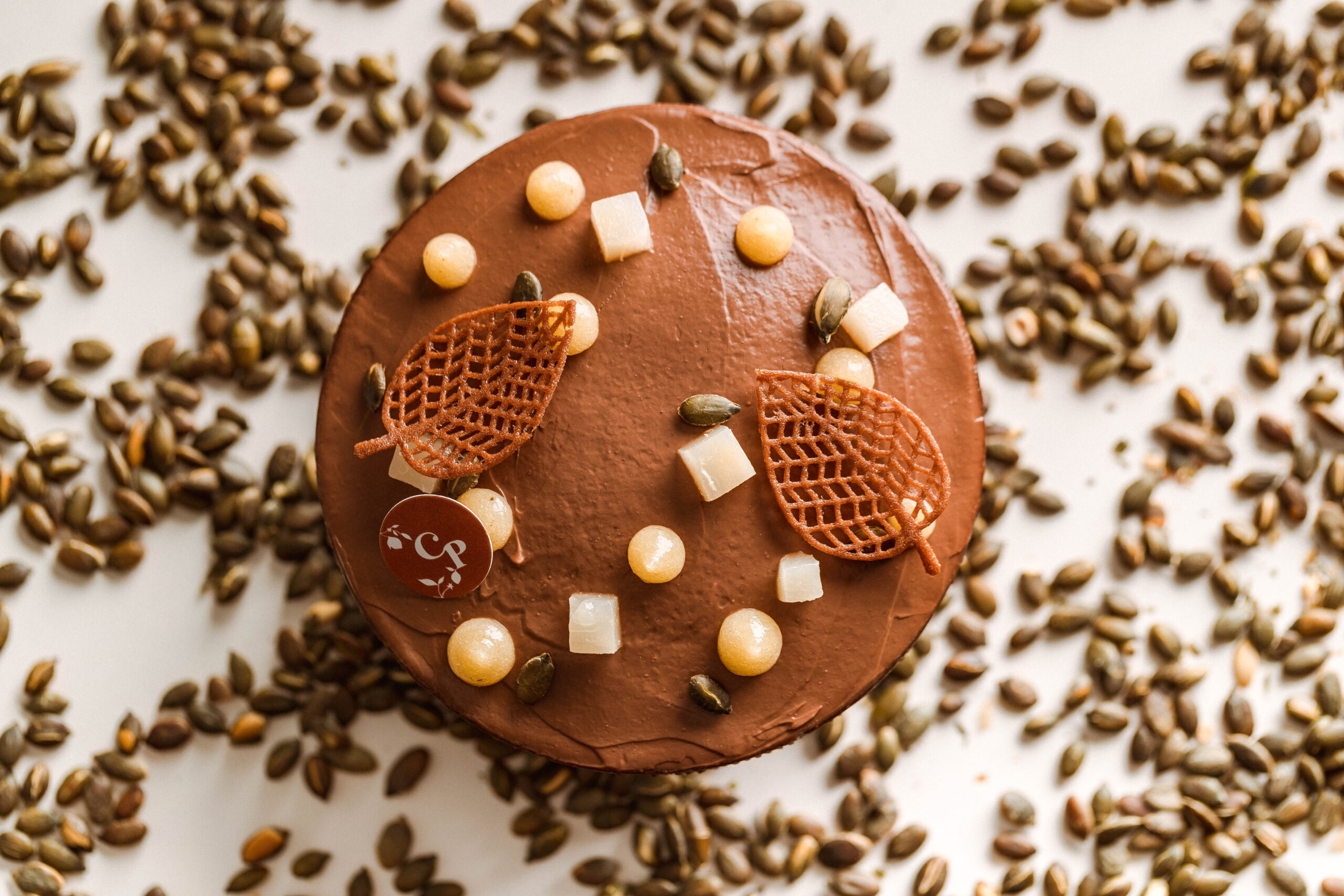 Chaque bouchée est un voyage au cœur de la saison, où la finesse du chocolat noir, la fraicheur de la poire et la gourmandise du praliné à la graine de courge se marient parfaitement, pour ajouter à vos repas et vos gouter une dégustation harmonieuse et un moment de pur plaisir.